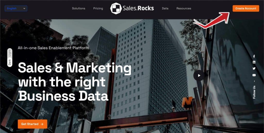 To demonstrate… In the marketing department at Sales.Rocks, our most valuable website conversion is “create an account”, performed when our leads click on our favorite CTA button in the upper right corner.