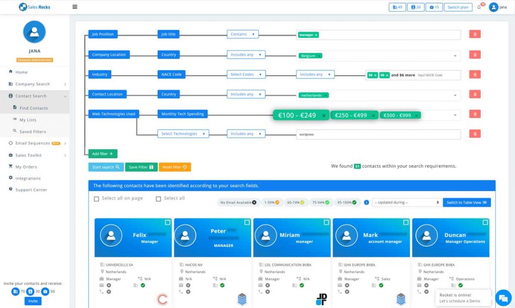 After narrowing down this list you can go even further with the technographics and their monthly spendings. Give these ones the largest number and you already have your scored lead list.