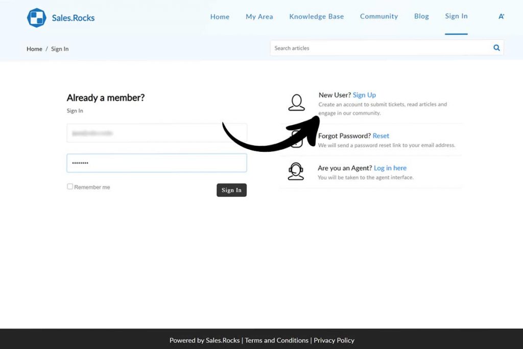 * Note that this is a separate entity from your app.sales.rocks account, so make sure to Sign Up and create your Help Desk Account, before you use the ticketing system.